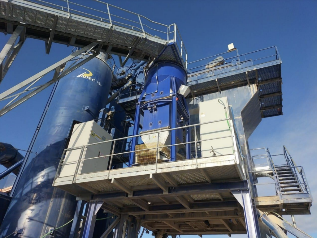 Paralelamente las plantas de Burgos y Ávila se han beneficiado de la instalación de sistemas de incorporación de aditivos líquidos al mezclador. Estos dispositivos, incluidos en el proyecto del PRTR, permiten dosificar aditivos rejuvenecedores por cada tipo de amasada y porcentaje de material fresado, facilitando la recuperación de las propiedades de los ligantes envejecidos. Con ello, se logra una alta versatilidad en la fabricación simultánea de todos los tipos de mezclas y porcentajes de materiales fresados.